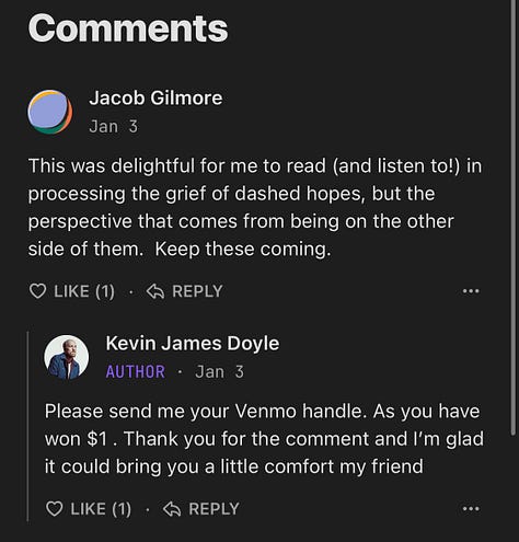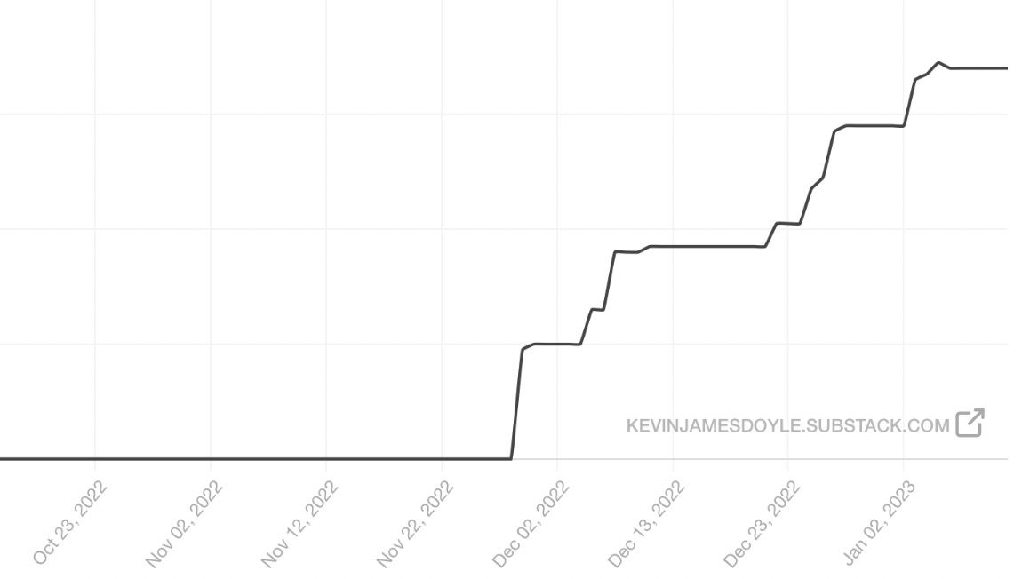Substack sent me a chart showing the growth of my readership so far. I noticed an uptick in subscribers after I started writing, interesting. Is that the most obvious statement ever? There was nothing to read, so um, why would there be any readers? But isn’t that a fear that holds us all back from starting a thing. No one will buy it, no one will care, I will be another moron who wrote on the internet and no one will read it. Happy to report I have exponentially more subscribers than I ever anticipated. And happy to report, I am still nervous and insecure about every piece I have published or am working on right now. Well, Kevin, too bad, I am going to keep putting them out. I have more subscribers than I ever anticipated for 2 very simple reasons.